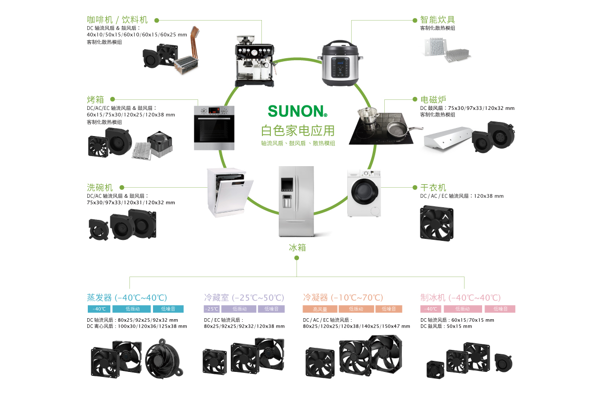 我們的日常生活充滿著各式各樣的家電產(chǎn)品,由于與人類的活動非常接近,因此應(yīng)用于家電產(chǎn)品的風(fēng)扇對聲音質(zhì)量的要求非常高,建準(zhǔn)極靜音系列風(fēng)扇導(dǎo)入聲音質(zhì)量優(yōu)化工程,將風(fēng)扇聲音質(zhì)量由「傳統(tǒng)聲學(xué)」進化至「心理聲學(xué)」分析,為產(chǎn)品創(chuàng)造出悅耳的聲音,該系列風(fēng)扇主要被應(yīng)用于白色家電和黑色家電終端產(chǎn)品,即使跟產(chǎn)品近距離接觸也不會被干擾,只給消費者舒適的享受!!